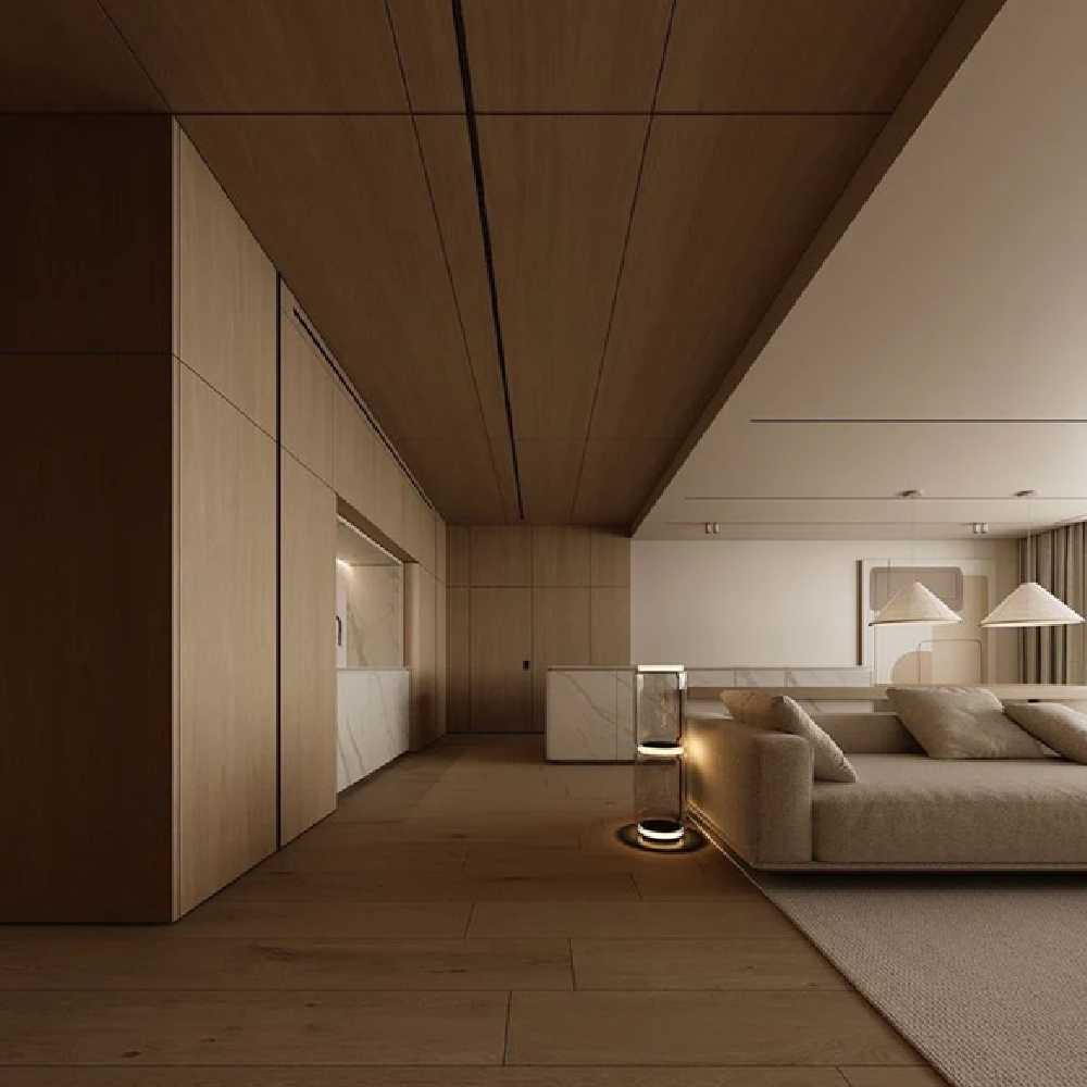 Revestimiento decorativo tipo listón para muros y plafones interiores. Aporta textura, calidez y estilo contemporáneo a los espacios, integrándose con facilidad a distintos estilos arquitectónicos.
