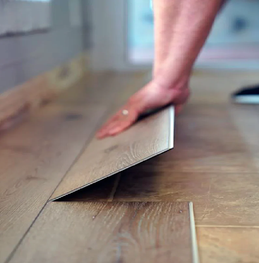 Piso vinílico de alta resistencia compuesto por piedra y polímero (SPC), ideal para interiores residenciales y comerciales. Su diseño tipo madera y sistema de ensamble clic lo convierten en una solución estética y duradera.