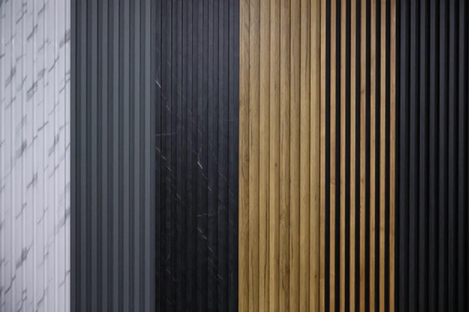 Revestimiento decorativo tipo listón para muros y plafones interiores. Aporta textura, calidez y estilo contemporáneo a los espacios.